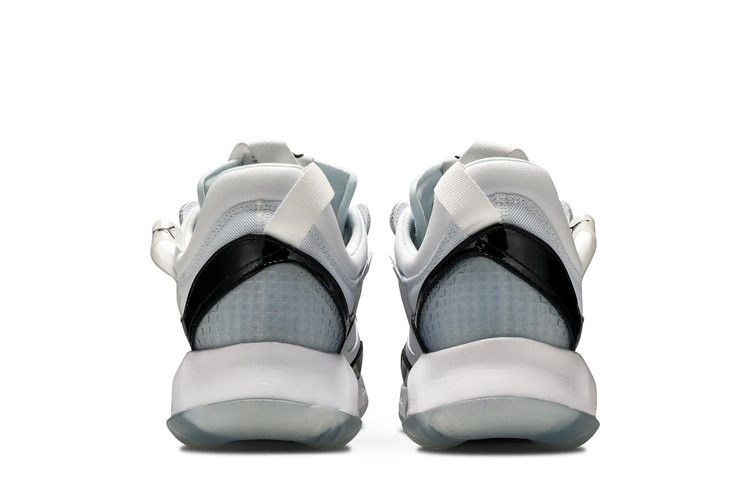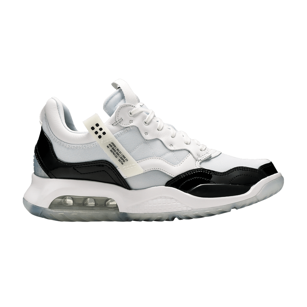 Jordan MA2 'Concord' демонстрируют знакомый дизайн, напоминающий о культовой расцветке OG модели Air Jordan 11. Верхняя часть выполнена из белого текстиля с накладками из черной лакированной кожи на носочной и пяточной частях. На эргономичном язычке расположены тканые язычки с логотипом Nike на левом ботинке и Jumpman на правом. Кроссовки опираются на скульптурную подошву из пеноматериала с видимым блоком Max Air 200 в пятке для легкой амортизации. Под ногами ледяная полупрозрачная подошва, на которой красуется Jumpman цвета Concord.