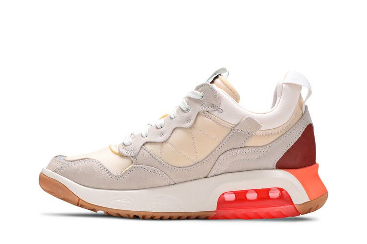 Jordan MA2 'Future Beginnings' - это спортивная смесь старого и нового, завернутая в сдержанную упаковку, сочетающую текстиль кремового цвета с тональными замшевыми накладками. Открытые швы, необработанные края и нестандартные логотипы подчеркивают деконструированную эстетику кроссовок. Легкая конструкция установлена на упругой подошве из пеноматериала, дополненной малиновым блоком Max Air в пятке и резиновой подошвой из жвачки.