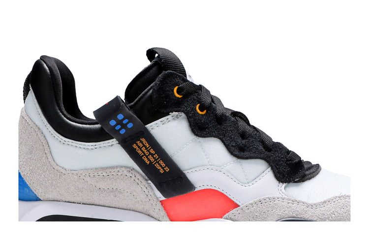 Jordan MA2 'Ultramarine' выполнены в нейтральной палитре с контрастными вкраплениями голубого и розового - сочетание цветов, напоминающее о классической цветовой схеме Nike. Силуэт выполнен из дышащего белого текстиля, усиленного тональными замшевыми накладками и подкладкой из черной кожи вокруг воротника. Микробрендинг, многочисленные ремешки и необработанные края из пеноматериала подчеркивают утилитарную эстетику кроссовок. Материал позаимствован у Jordan Max 200, а под пяткой видна амортизация Max Air.