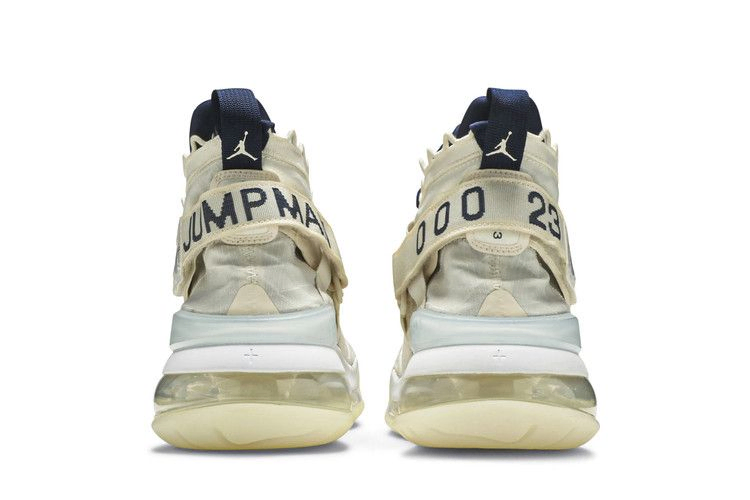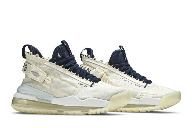 Вдохновленные полетами в космос, Air Jordan Proto Max 720 сочетают в себе язык дизайна бренда и футуристическую практичность. Эта версия "Pale Ivory", представленная в июне 2019 года, имеет внешнее покрытие, прикрывающее контрастный внутренний ботинок, и люверсы, опоясывающие лодыжку. Фирменная графика украшает язычок и внешний ремешок на пятке. По всей длине тональной резиновой подошвы проходит камера 720 Max Air, обеспечивающая заметную и чуткую амортизацию.