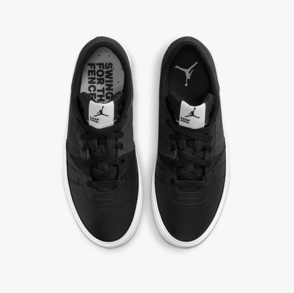 Модель Jordan Series.01 «Антрацит» отдает дань уважения молодому MJ, чье конкурентное преимущество было сформировано в раннем возрасте с помощью его старшего брата Ларри. Монохромный верх из кожи и замши черпает вдохновение в образе Майкла «Черная кошка». Сверху на язычке написано «Дорогой Майк» на бирке с логотипом Jumpman, а на левой стельке есть рисунок с надписью «Swing for the Fences». Белая резиновая подошва под ногами имеет маркировку «45/2» как намек на номер на футболке Джордана. Спортсмен выбрал 23, потому что считал, что если он будет вдвое хуже Ларри, у которого было 45, то он будет на пути к успеху.- Цвета: Anthracite/Summit White/Black