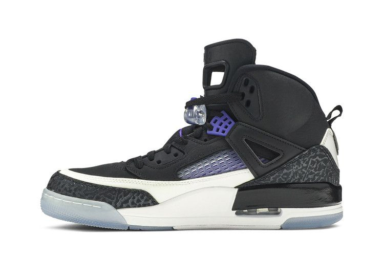 Кроссовки Jordan Spizike 'Concord' - это гибридная модель, в которой сочетаются элементы от Air Jordan 3, 4, 5 и 6. Смелое сочетание - это дань уважения режиссеру Спайку Ли, который работал над моделью OG в 2006 году. Обновление, вышедшее в октябре 2018 года, представлено в классической черно-фиолетовой расцветке, вдохновленной кроссовками Air Jordan 11. Модель выполнена из синтетической кожи и сетки, на двухцветной промежуточной подошве с видимыми блоками Air-Sole.