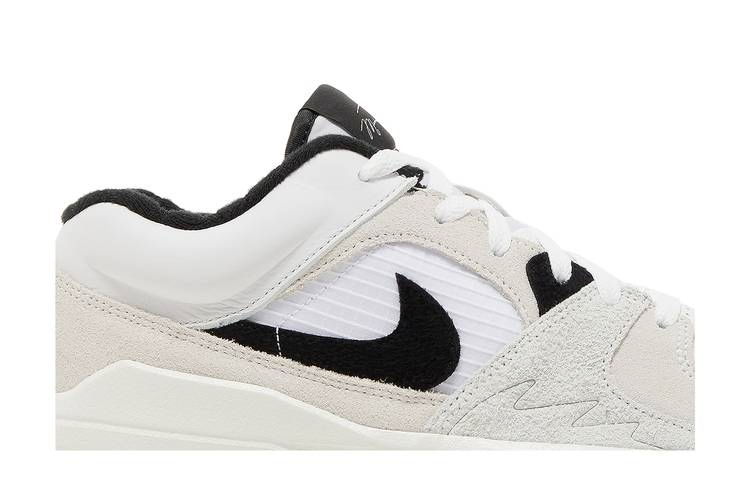 Модель Jordan Stadium 90 "Sail Black" выполнена в актуальной двухцветной цветовой гамме и представляет собой силуэт, вдохновленный моделями Air Jordan 1 и Air Jordan 5. Верхняя часть кроссовок состоит из белой кожаной основы и белых замшевых накладок на носочной и пяточной частях. Дышащая сетка на задней панели, а также обрезанный черный замшевый логотип Swoosh. Подпись MJ напечатана на тканом язычке, а вышитый брендинг Nike Air украшает заднюю часть пятки. Промежуточная подошва выполнена из пеноматериала Formula 23 от Jordan Brand, а в пятку вмонтирован блок подошвы Air.