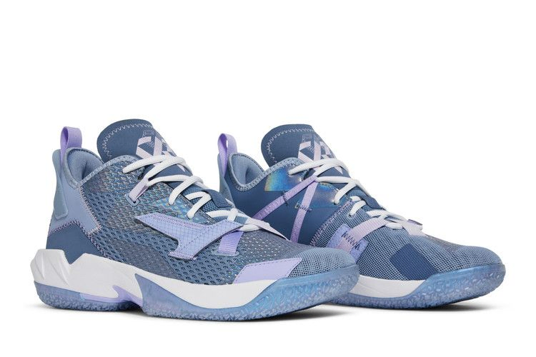 Jordan Why Not Zer0.4 'KB3 PF - это воздушный вариант четвертой фирменной обуви Рассела Уэстбрука. В кроссовке используется сетчатый верх грифельно-синего цвета, дополненный лавандовыми ремешками, интегрированными в систему шнуровки для фиксации. Чувствительная амортизация обеспечивается двойными блоками Air Zoom, расположенными в передней части полноразмерной подошвы из пеноматериала. Эта версия PF является эксклюзивом для азиатского рынка и имеет сверхпрочную резиновую подошву, предназначенную для игры на открытых площадках.