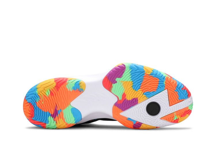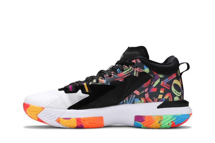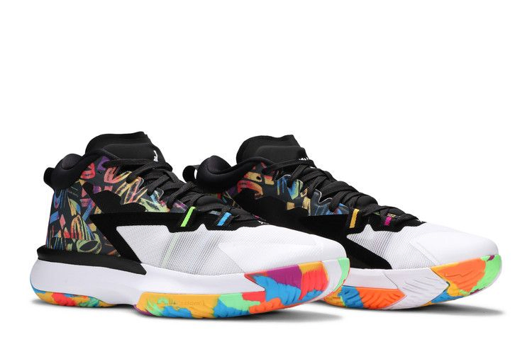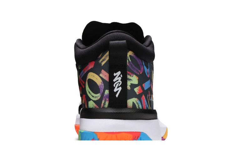 Модель Jordan Zion 1 PF 'Noah' посвящена крепкой связи между Зионом Уильямсоном и его младшим братом. Графика, напоминающая каракули, на верхней части вдохновлена поездкой в глобальную штаб-квартиру Nike, где Ной нарисовал мелками полностью белую модель Air Jordan 1 Low. В числе преимуществ - двойные внутренние ремешки, полноразмерная система Air Strobel и нижний блок Zoom Air, расположенный под передней частью стопы. В этой модели PF используется сверхпрочная резиновая подошва, предназначенная для игры на открытых площадках.