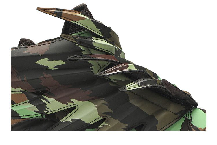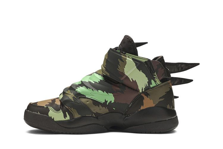 Модель JS Wings 3.0 Print 'Sauvage', ставшая символом преувеличенного подхода к дизайну кроссовок adidas Джереми Скотта, выполнена с матовым камуфляжным узором на кожаном верхе. Выраженные панели в виде крыльев охватывают также люверсы и шнурки.
