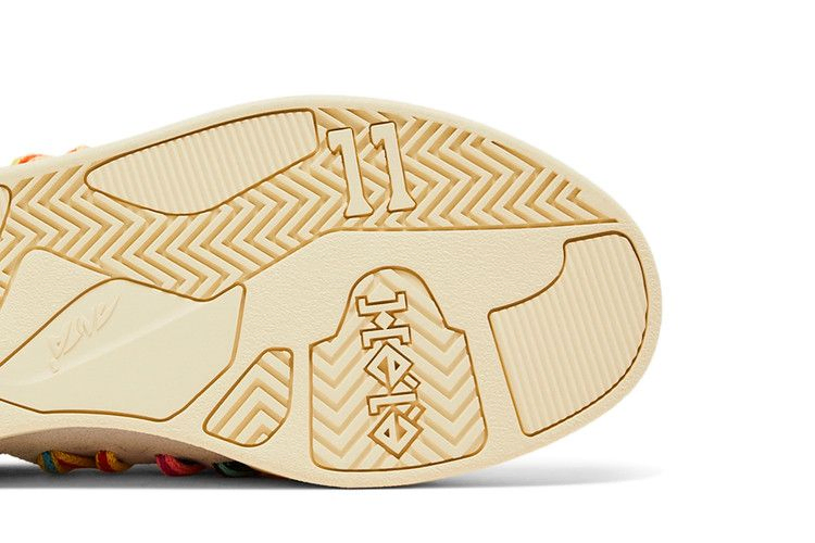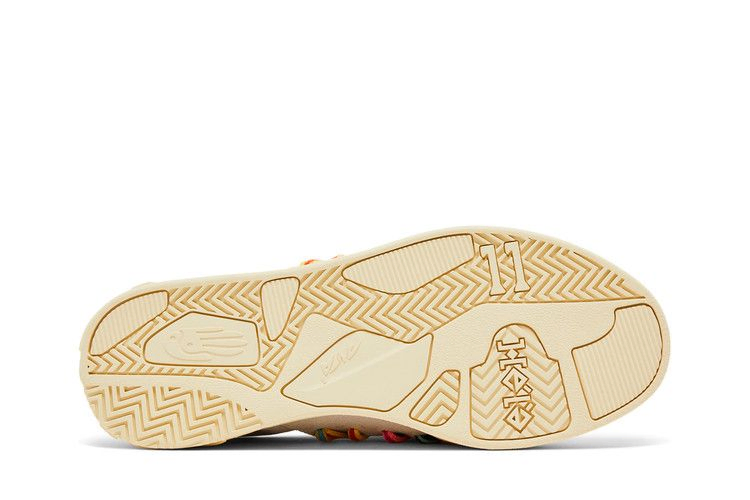 Модель Anta Kai Hélà Style "Ivory", выпущенная в рамках двухкомпонентного пакета "Roots Pack", имеет верх из белой замши и снабжена разноцветной многослойной системой шнуровки. Фирменные элементы включают подпись Кайри Ирвинга на язычке и его персональный логотип, пришитый на крышке. Дебютный силуэт спортсмена НБА установлен на резиновую подошву кремового цвета с открытой танкеткой из пеноматериала для легкой амортизации.- Артикул: 8125A1810S-1