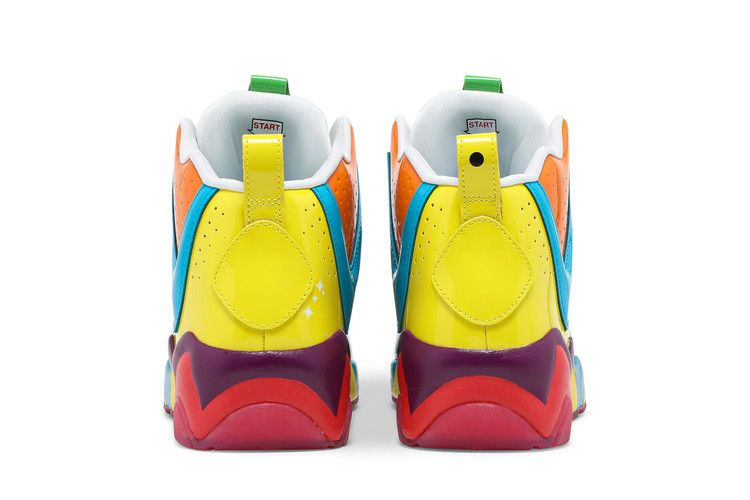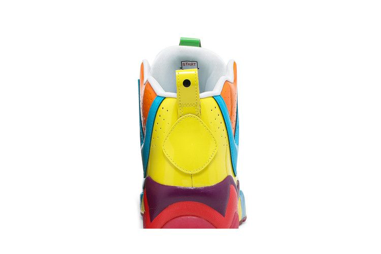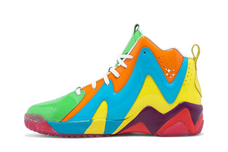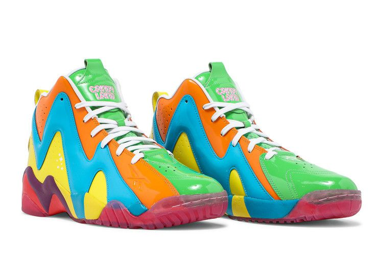 Вдохновленные классической настольной игрой Hasbro, Reebok Kamikaze 2 "Candy Land" привнесли яркие оттенки в ретро-обувь, которую прославил Шон Кемп. Глянцевая лакированная кожа использована для отделки верха. Основа цвета лайма - зеленый, а зигзагообразные накладки - оранжевый, синий и желтый. Брендинг Candy Land украшает язычок, а стрелка игры "Start" указывает путь на внутренней стороне язычка. Смешанная палитра продолжается на промежуточной подошве из EVA и полупрозрачной резиновой подошве, которая имеет ягодно-красный цвет.
