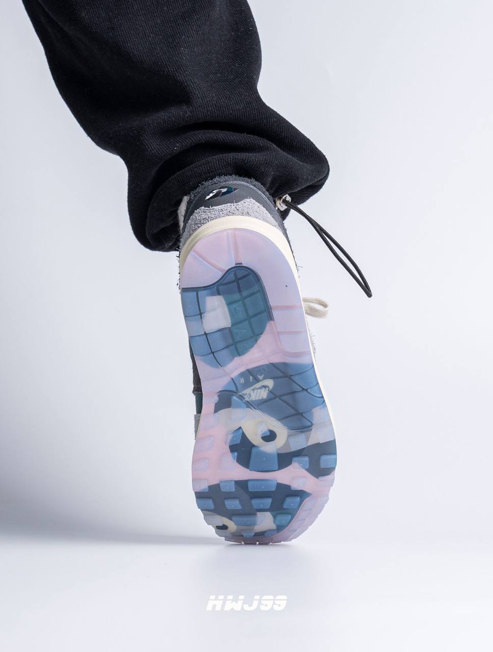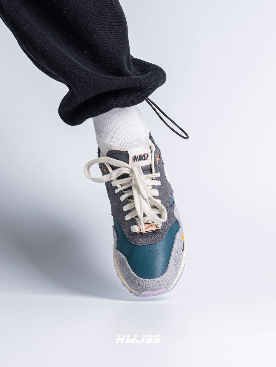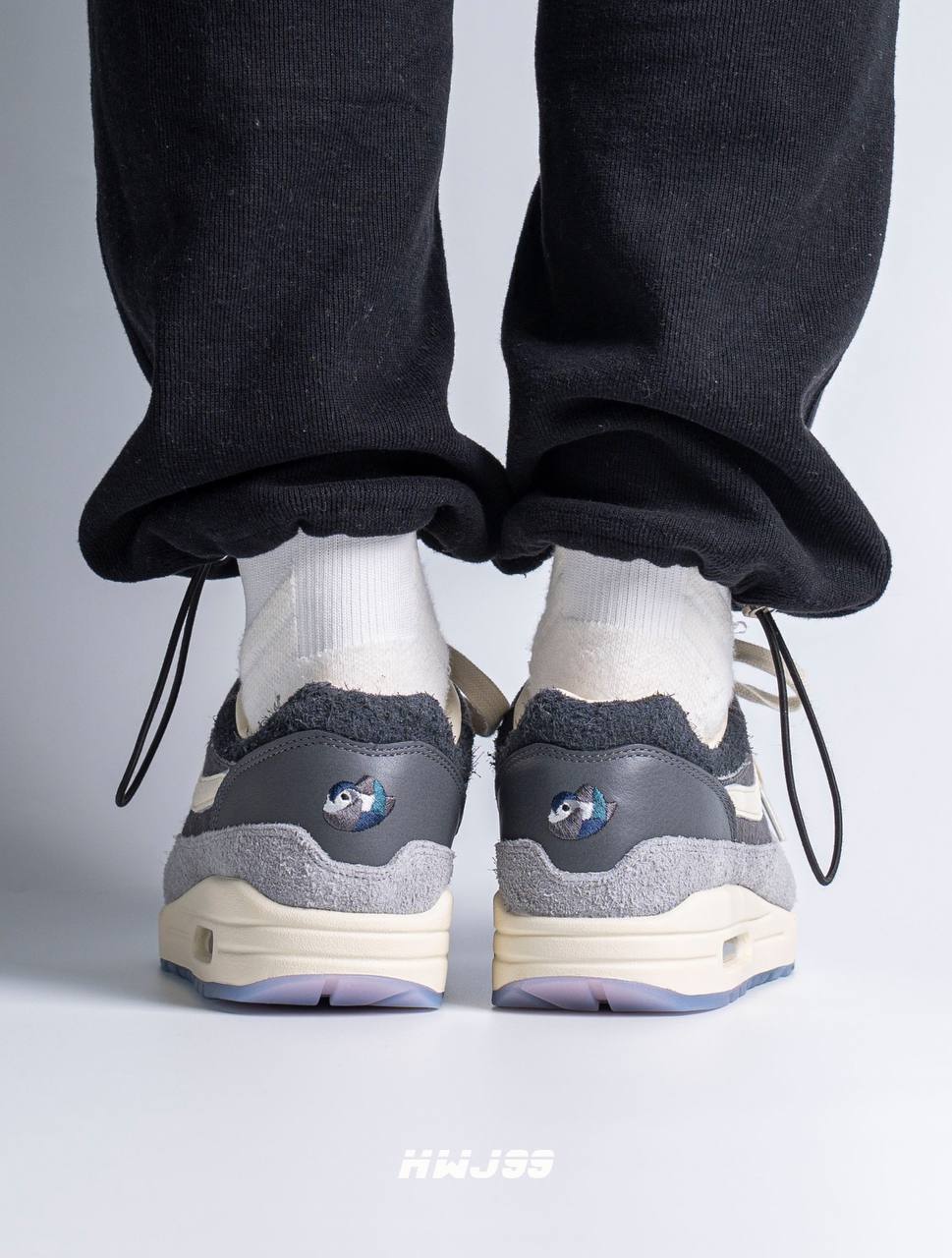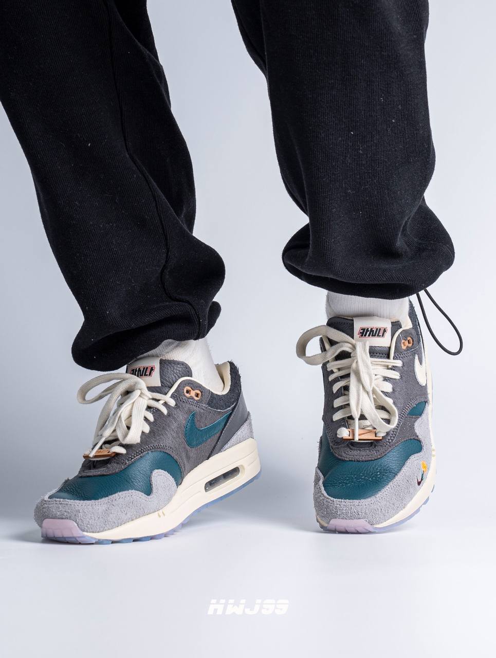 Разработанная в сотрудничестве с корейским ритейлером модель Kasina x Nike Air Max 1 SP "Won-Ang Grey" подчеркивает тему единства и любви, которую символизирует азиатская утка, давшая название обуви. Верхняя часть кроссовок выполнена из смешанных материалов и сочетает в себе носочную часть из кожи тигрового цвета, четвертные панели из шерсти пони угольного цвета и разнофактурные кожаные Swoosh белоснежного и тигрового цветов. Цветочный Swoosh украшает брызговик из серой ворсистой замши, а на кожаной накладке на пятке красуется рисунок утки-мандаринки. Кряква повторяется под полупрозрачной резиновой подошвой.- Цвета: Particle Grey/Iron Grey/Dark Smoke Grey/Dark Teal Green