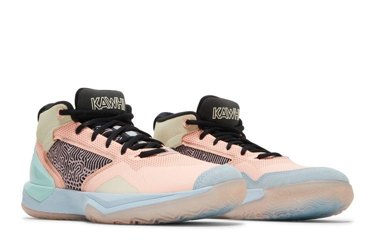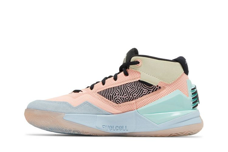 New Balance KAWHI "Cloud Pink" - это фирменные кроссовки Каухи Леонарда в пастельных тонах. Верх выполнен из розового текстиля с тональными накладками без швов и пудрово-синим замшевым мыском. Надпись "Kawhi" написана печатными буквами на язычке, а литой брендинг NB украшает пятку из TPU акварельного цвета. Кроссовки опираются на полноразмерную промежуточную подошву FuelFoam, поддерживаемую полноразмерной пластиной, разработанной специально для Каухи и видимой через полупрозрачную резиновую подошву.