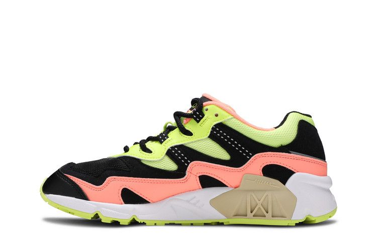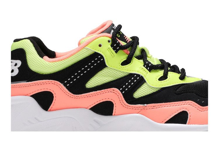 Кроссовки Kawhi Leonard x New Balance 850 'Sunrise', выпущенные в составе пакета из трех предметов, выполнены из смешанных материалов, сочетающих в себе однотонную черную основу с накладками розового и неоново-желтого цветов. Контрастная белая строчка выделяет ремешки из тесьмы, интегрированные в систему шнуровки кроссовок, в тон логотипу NB, вышитому на пятке. Модель 850, а также соответствующие модели OMN1S и 997S составляют тематическое продолжение пакета New Balance "Sunset".