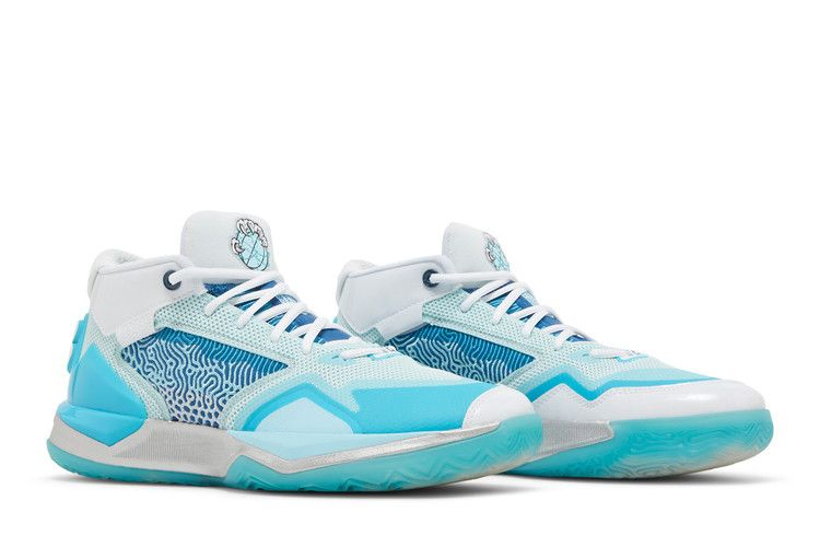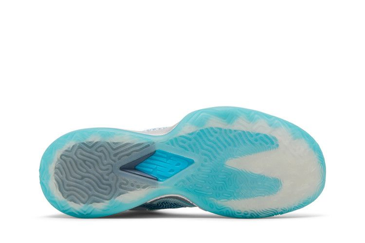 New Balance KAWHI "Christmas" - это морозная расцветка фирменных кроссовок Каухи Леонарда, вдохновленная Снежным Васетом, мифическим существом, обитающим в районе Великих озер США. Ледниково-голубые тона рассеяны по всему трикотажному верху, усиленному накладками без швов и формованной стойкой пятки из TPU. На язычке изображена графика с острыми когтями, сжимающими баскетбольный мяч. Серебристо-металлическая отделка межподошвы из вспененного материала FuelCell и резиновая подошва ледяного синего цвета усиливают ветреный мотив.