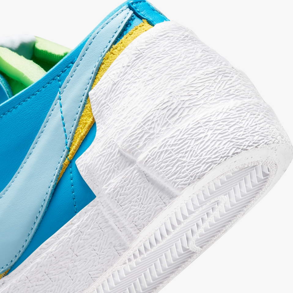 Модель Nike Blazer Low sacai KAWS Neptune Blue имеет кожаный верх цвета Neptune Blue с разноцветными накладными глазками и Swooshами, вдохновленная палитрой, преобладающей в самых известных произведениях искусства KAWS. На стелящейся подошве, на боковом мыске выбиты знаки отличия KAWS XX. Двойные язычки и шнурки добавляют завершающий штрих. Nike Blazer Low sacai KAWS Neptune Blue выходит в ноябре 2021 года и продается по цене от $140.