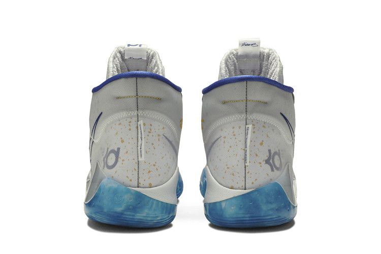 Перед тем как Кевин Дюрант был обменян в "Бруклин Нетс" в июле 2019 года, Nike выпустил Zoom KD 12 "Warriors Home" в мае, чтобы соответствовать его форме на тот момент. Синяя и желтая отделка подчеркивает полностью белую многослойную сетку, придавая фанатам "Голден Стэйт" и коллекционерам обуви минималистичную привлекательность с тонким цветовым контрастом. Эта высокопроизводительная обувь с блоком Zoom Air, расположенным ближе к стопе, и еще одним блоком, расположенным под пяткой, создана для сверхчувствительной амортизации.