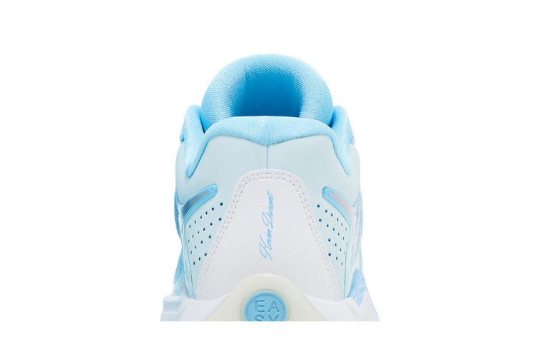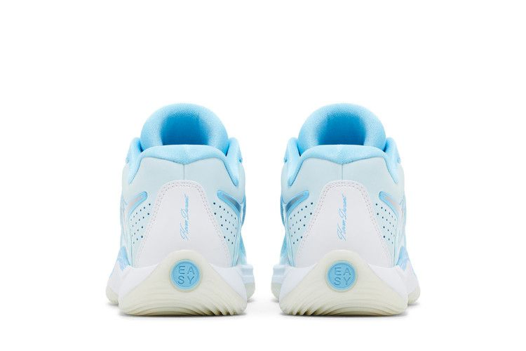 Nike KD 17 'Christmas Pack' демонстрирует дизайн в зимней тематике, подчеркнутый верхом из текстурированной сетки цвета Aquarius Blue. Вдохновленный Air Max Plus, волнистый каркас из TPU украшен графикой потрескавшегося льда и градиентной синей отделкой. Серебристый металлический Swoosh украшает боковую сторону, совпадая с надписью "Easy" на язычке. Легкая межподошва из пеноматериала с блоком Air Strobel в пятке и амортизацией Zoom Air в носочной части.- Артикул: FZ1525-400