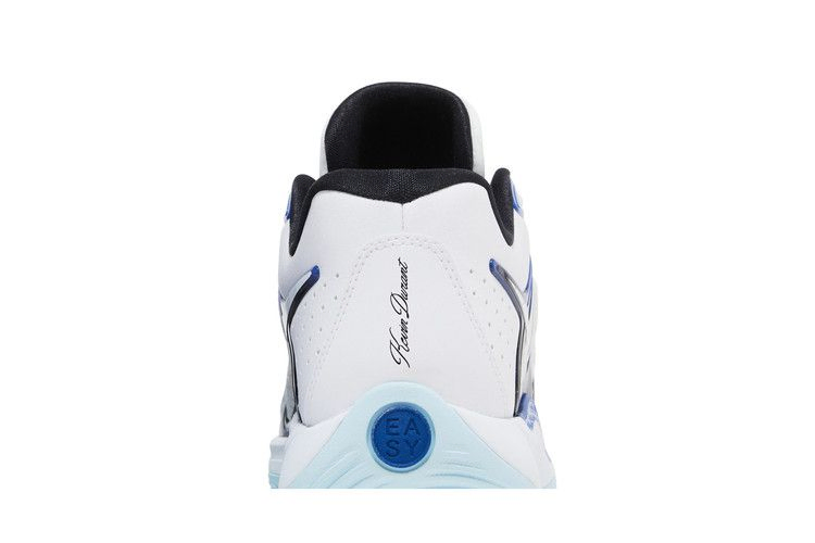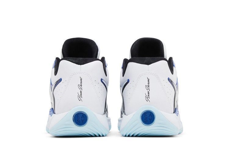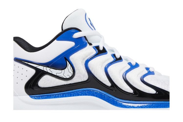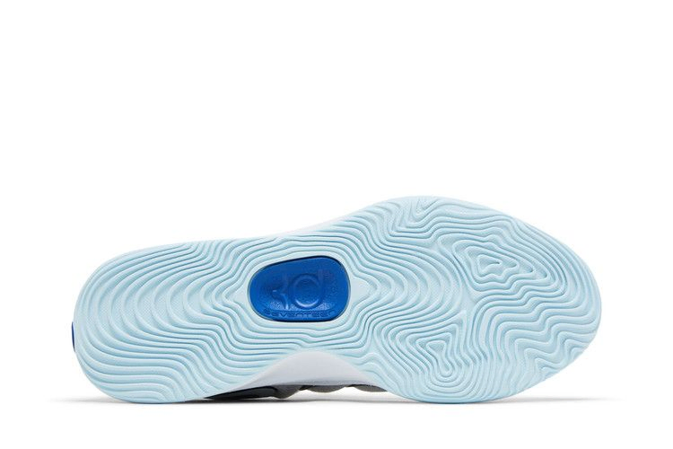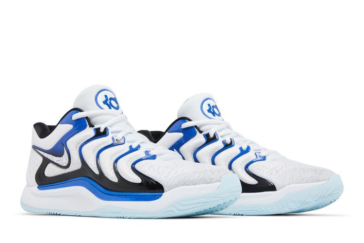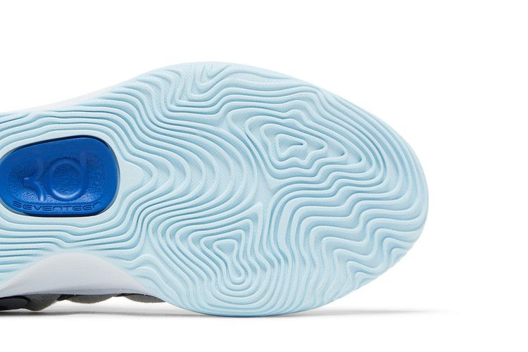 Цветовая палитра Nike KD 17 "Penny" напоминает о фирменной линии Пенни Хардауэя во время выступлений спортсмена НБА в команде Orlando Magic. Верхняя часть кроссовок выполнена из белого текстиля с узором и градиентным синим каркасом из TPU, вдохновленным Air Max Plus. Логотип Кевина Дюранта "KD" украшает язычок, а его подпись нанесена на заднюю часть пятки. Легкая амортизация обеспечивается промежуточной подошвой Cushlon с отзывчивым блоком Zoom Air в передней части стопы.- Артикул: FJ9487-100