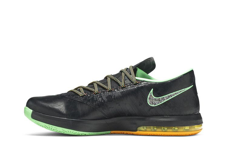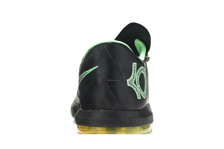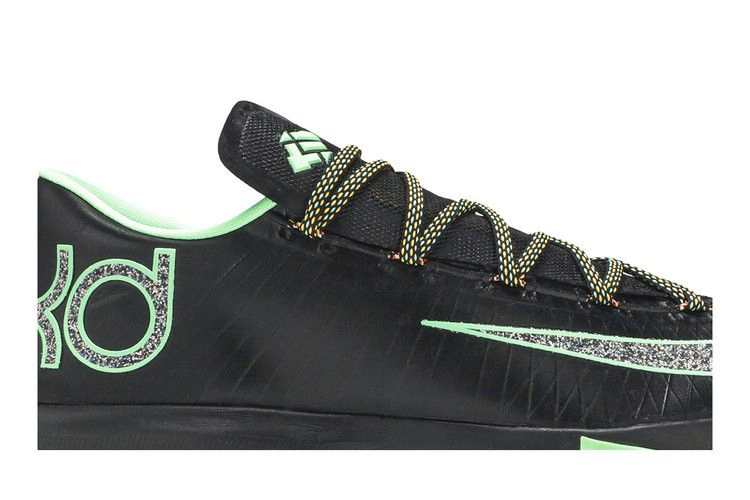 Вдохновленные условиями недостаточного освещения, KD 6 "Night Vision" имеют гладкий верх из черной кожи с технологией Flywire по бокам и в передней части стопы для надежной фиксации. Низкая модель также может похвастаться эластичными шнурками с узором, акцентами Lucid Green на брендинге "KD", язычке и на большом Swoosh на передней части стопы. Для дополнительного комфорта кроссовки оснащены промежуточной подошвой Phylon с амортизацией Zoom и гибкими канавками на подошве для надежного сцепления.