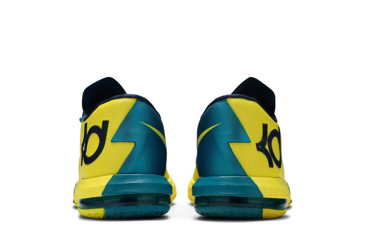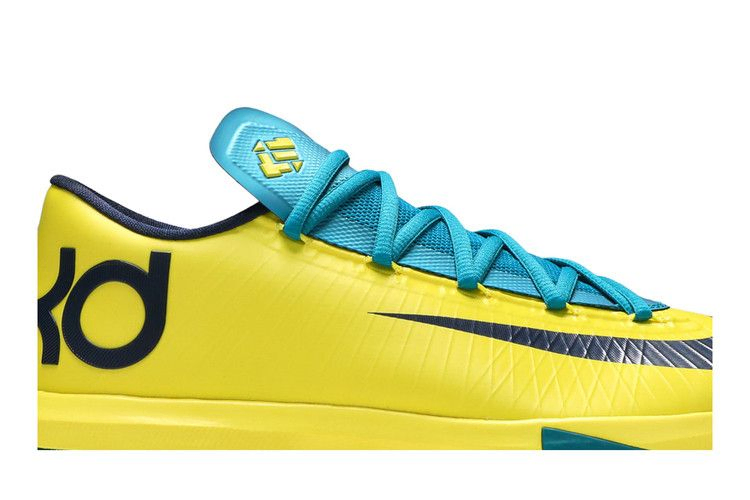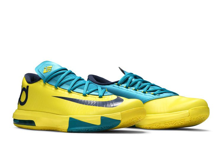 Выпущенная в 2013 году модель KD6 в цветах Sonic Yellow, Midnight Navy и Tropical Teal стала дебютной расцветкой шестого фирменного кроссовка Кевина Дюранта. Дизайн был вдохновлен родным городом Дюранта - Сит-Плезант, штат Мэриленд, где большая часть местных знаков отличия имеет оттенки зеленого и желтого. Низкий кроссовок имеет двухслойный верх с технологией Flywire, перекрывающийся раздвоенный язычок, а также подушечки Max Air и Zoom Air в межподошве.