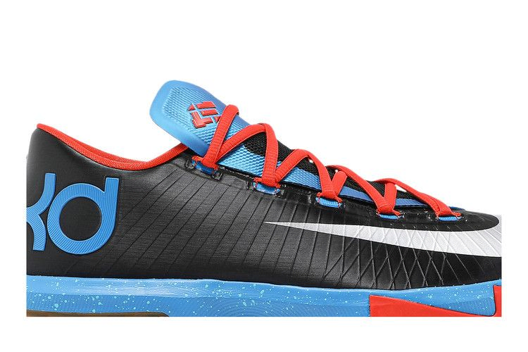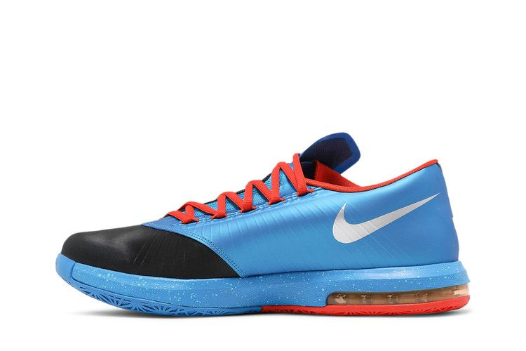 Шестой фирменный кроссовок Кевина Дюранта от Nike вышел в версии Away с традиционными цветами команды Oklahoma City Thunder. Низкие кроссовки имеют черный верх и синюю промежуточную подошву в крапинку, которая имеет заметную амортизацию в пятке. Оранжевый цвет представлен на носке, а также на шнурках и внутренней подкладке. Инициалы Кевина Дюранта нанесены синим цветом на пятку.