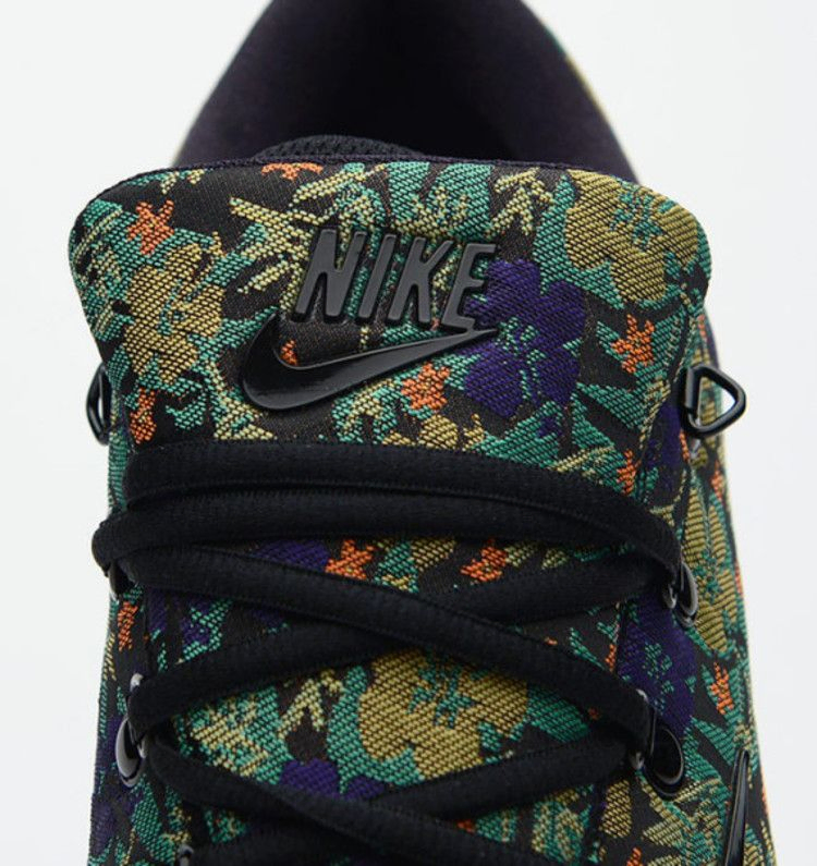 Nike KD 6 EXT QS "Floral" - это готовые к игре кроссовки с уличным верхом. В ткань вплетен сложный цветочный узор, состоящий из фиолетовых, тигровых, оранжевых и желтых оттенков, подчеркнутый контрастными черными цветами на Swoosh, скоростной системе шнуровки и личном логотипе Кевина Дюранта. Видимый блок Max Air находится в белой промежуточной подошве, которая поддерживается полупрозрачной подошвой.