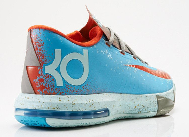 Модель KD 6, разработанная Лео Чангом, стала первой моделью с низким верхом в линейке KD. Вдохновленные цветами мэрилендского синего краба, кроссовки имеют верхнюю часть цвета Gamma Blue с крапинками, белыми пузырьками и акцентами цвета Team Orange. Промежуточная подошва Teal Tint украшена золотыми деталями в крапинку и держит пяточную часть Gamma Blue Max Air. Язычок и шнурки из сетки Mine Grey приглушенно контрастируют.