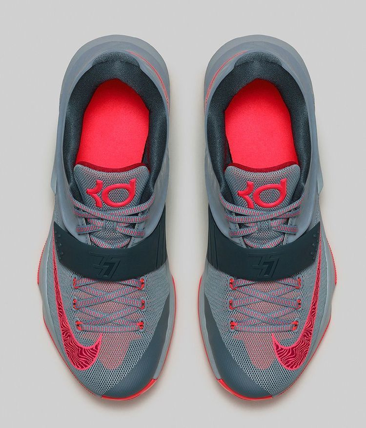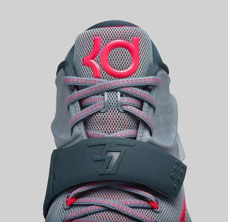 Вдохновленные голевыми вспышками Кевина Дюранта, кроссовки Nike KD 7 "Calm Before the Storm" выполнены в серо-розовой цветовой гамме, призванной создать впечатление надвигающейся бури на горизонте. На подошве выгравирован родной для Дюранта штат Мэриленд, а на регулируемом ремешке в носочной части кроссовка - имена влиятельных членов семьи.