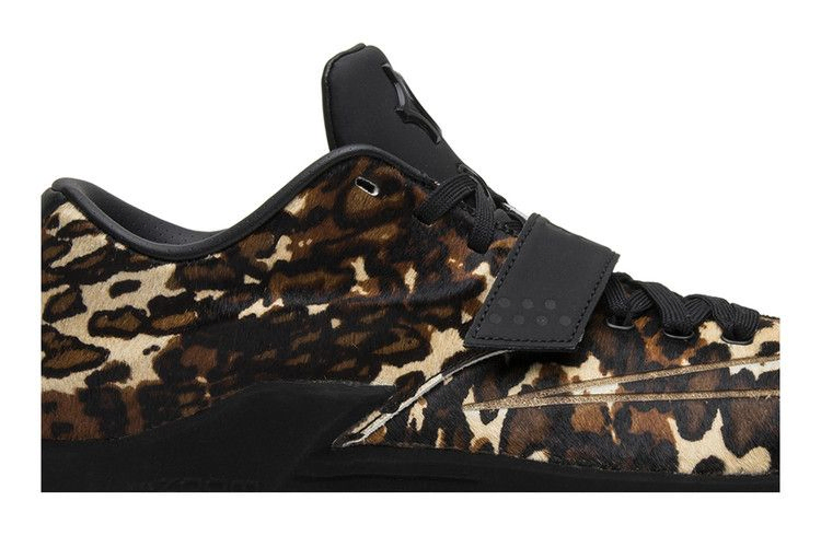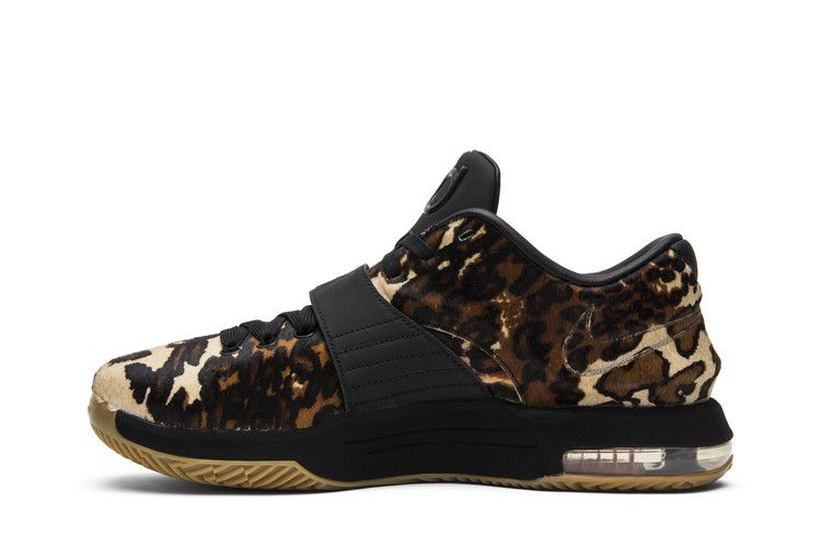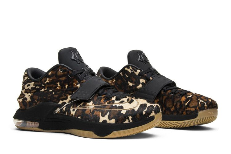 Знаменитая звезда НБА Кевин Дюрант отдает дань уважения своей альма-матер, Техасскому университету, в кроссовках Nike KD 7 EXT QS "Longhorn State", которые были выпущены в январе 2015 года. Верх кроссовок из конского волоса украшен смелым животным принтом и логотипом Swoosh на крышке. Застежка-шнуровка и регулируемый ремешок в средней части стопы обеспечивают надежную поддержку. Амортизаторы Zoom Air и Max Air в носочной и пяточной частях обеспечивают максимальную амортизацию.