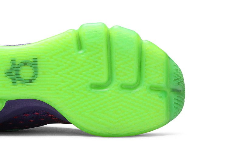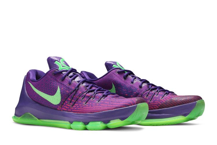 В 2014 году Кевин Дюрант получил свою первую награду MVP, и в честь этого достижения Nike выпустил соответствующую расцветку. Модель KD 8 "Suit" имеет верхнюю часть Court Purple Flyweave с деталями Vivid Purple на носочной части и тросами Flywire для поддержки. Низкая модель также оснащена мягким язычком для дополнительного комфорта, полноразмерным блоком Zoom Air в промежуточной подошве Phylon, обеспечивающим эффективную амортизацию, и пенополиуретановым пяточным упором. Зеленые акценты Strike расположены на подошве, язычке и логотипе Swoosh.