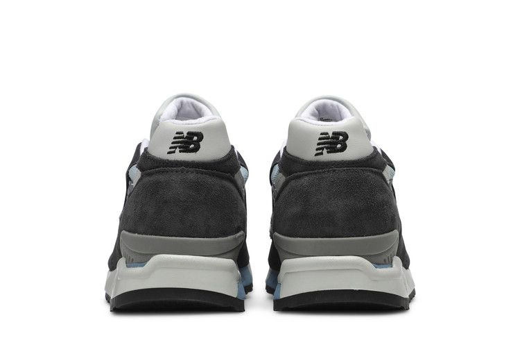 Модель Kith x New Balance 998 Made in USA 'Steel Blue', созданная в сотрудничестве с торговым домом и брендом Ронни Фига, заимствует знакомую цветовую гамму культовой модели 1300CL. Ретро-кроссовки имеют традиционную конструкцию, сочетающую бледно-голубую сетчатую основу с замшей из свиной кожи угольно-серого цвета. Двухслойный логотип 'N' украшает четверть кроссовка, а белый светоотражающий верхний слой очерчен грифельно-синим. Легкая промежуточная подошва ABZORB поддерживает двухцветный дизайн.