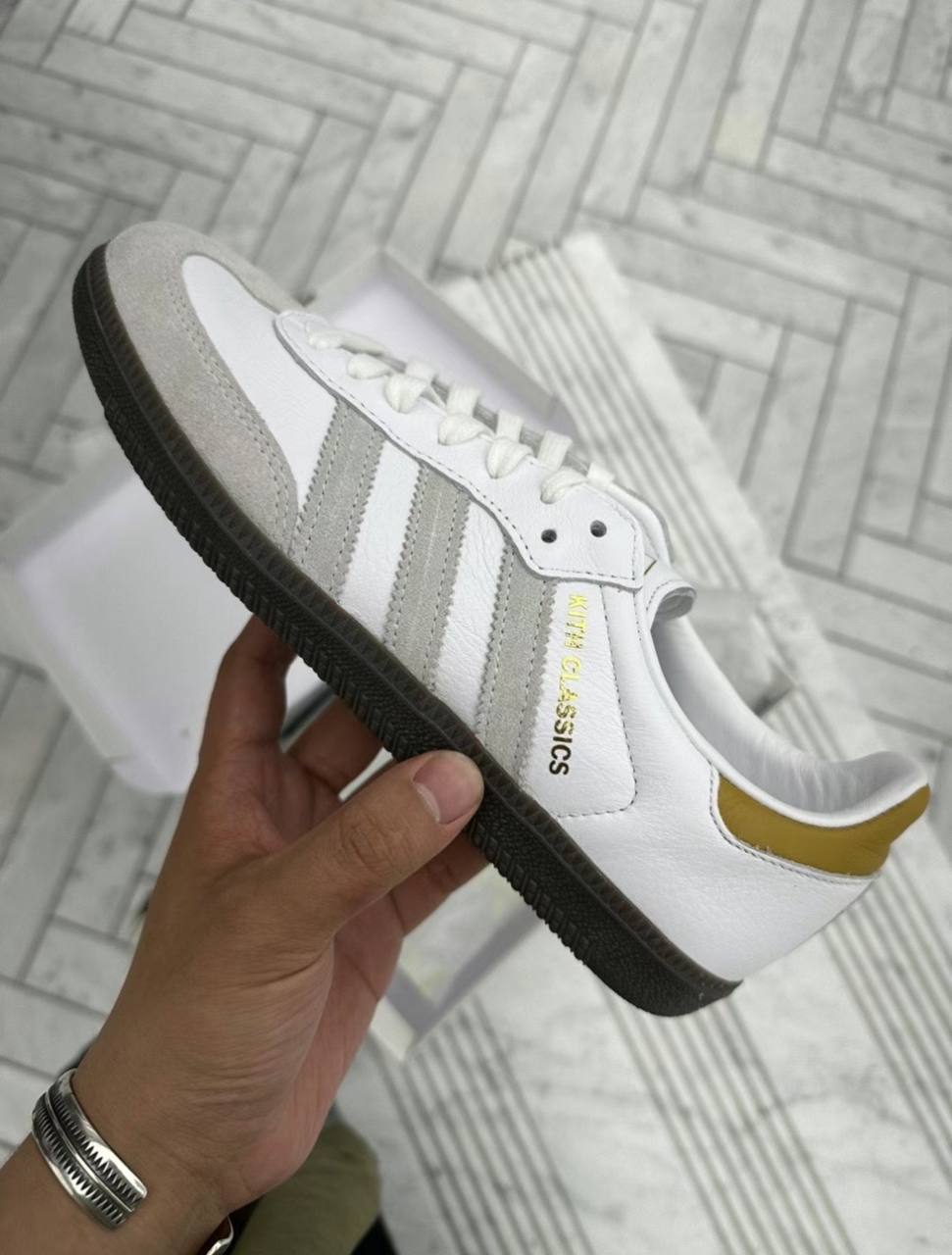 Модель обуви Kith x adidas Samba OG Classics Program - Mango, рожденная на футбольном поле, является вечной иконой уличного стиля. Этот силуэт остается верным своему наследию благодаря со вкусом подобранному низкопрофильному верху из белой кожи с серыми полосками, замшевым накладкам и подошве из резины, что делает их основным элементом гардероба каждого - как на поле, так и вне его.- Цвета: Footwear White/Off White
