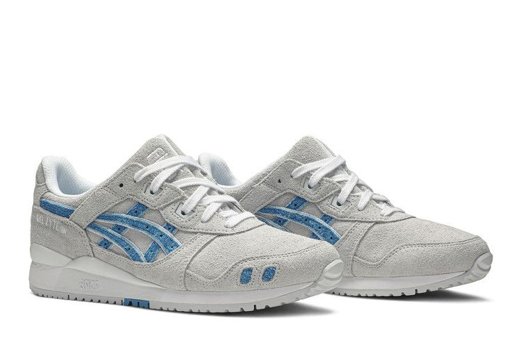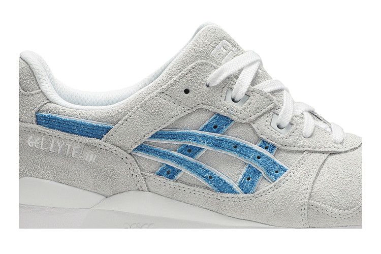 Кроссовки KITH x Gel Lyte 3 "Super Blue" - это юбилейная 10-летняя версия оригинальных "Super Blue", созданных ASICS и Ронни Фигом (Ronnie Fieg) из KITH. Модель повторяет классический дизайн Gel Lyte 3 и выполнена в нейтральном цвете из ворсистой замши с контрастными вкраплениями ледяного синего. Как и Gel Lyte 3 прошлых лет, эта модель имеет разделенный язычок и амортизацию GEL. На стельке напечатана надпись "FIEG" в честь соавтора.