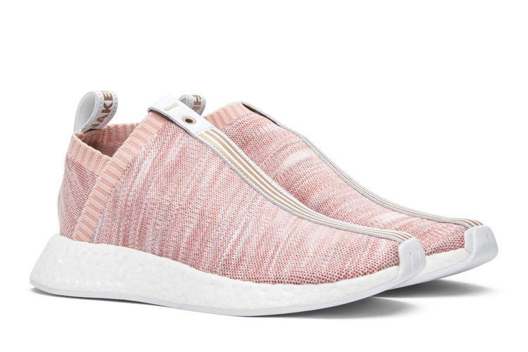 NMD CS2 были созданы в сотрудничестве с копенгагенским бутиком Naked и легендарным нью-йоркским ритейлером Kith для программы обмена кроссовками adidas Consortium 2017 года. Kith x Naked x NMD_CS2 Primeknit "Pink", выпущенные в двух экземплярах вместе с цветом "Tan", имеют безлаковый верх, одетый в розовый меланж Primeknit.