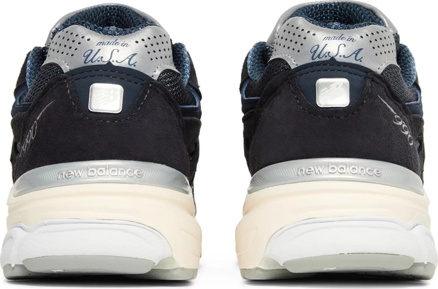 Модель Kith x New Balance 990v3 Made In USA Genesis' использует традиционную конструкцию, сочетающую сетку синего цвета с накладками из черной замши. Светоотражающие серые акценты украшают логотип 'N' и перфорированный язычок на пятке из искусственной кожи, отмеченный брендингом "Made in USA". На язычке белым шрифтом вытиснена надпись "New Balance", которая является единственным контрастным цветовым пятном на кроссовке. Кроссовки установлены на промежуточную подошву ENCAP от New Balance, которая содержит мягкую пенную основу в прочном полиуретановом ободе.- Цвета: Blue