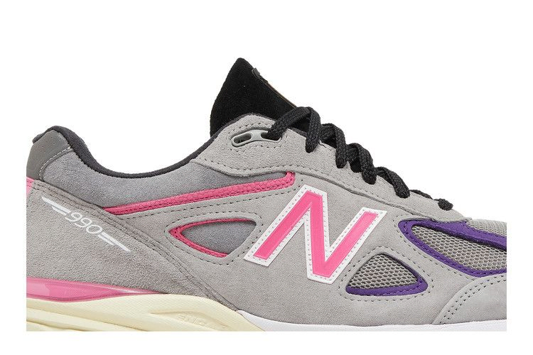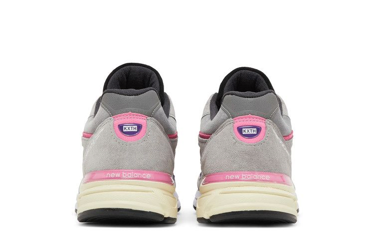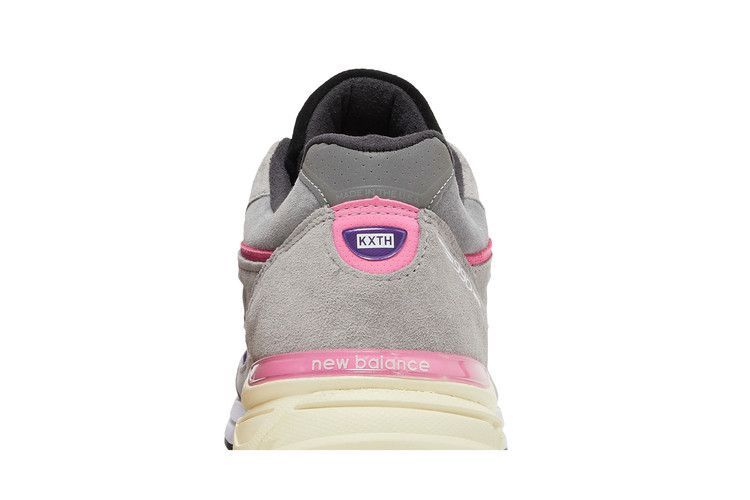 Модель Kith x New Balance 990v4 Made in USA "United Arrows & Sons" представляет собой одну из четырех расцветок, входящих в специальную коллекцию обуви, посвященную 10-летию Kith и 40-летию модели 990. Вдохновленная совместной работой Kith 997S "United Arrows & Sons" 2018 года, модель выполнена из серой сетки и замши с контрастными розовыми и фиолетовыми акцентами. Розовый и белый логотип "N" украшает четверть панели, а брендинг "KXTH" украшает розовый кожаный язычок на пятке. Легкая амортизация обеспечивается двухцветной промежуточной подошвой ENCAP.
