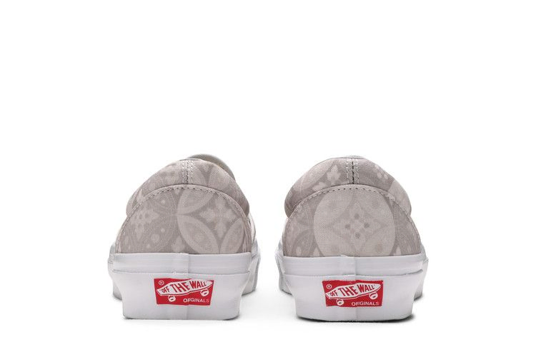 Капсульная коллекция Kith x Vans Vault OG Classic Slip-On LX 'Gray Tile', выпущенная в честь 10-летия розничных магазинов и бренда Ронни Фига, демонстрирует тональный принт по всему верху. Воротник с мягкой подкладкой обеспечивает удобную посадку, а эластичные резинки позволяют легко надевать и снимать силуэт без шнурков. Красный номерной знак на пятке - единственный контрастный цветовой акцент. Брендинг Vans на носочной части дополнен юбилейным логотипом "KXTH".