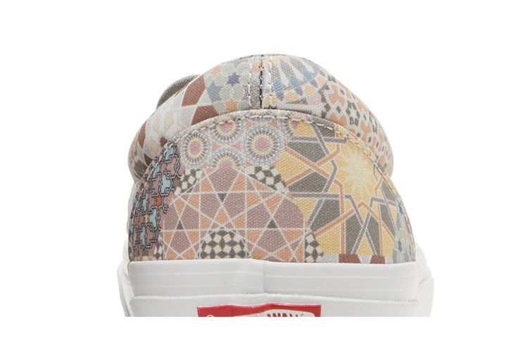 Модель Kith x Vans Vault OG Classic Slip-On LX 'Multi Tile' взята из обширной коллекции, посвященной 10-летию торговой империи и бренда Ронни Фига. В модели использован канвасовый верх, полностью покрытый серией абстрактных геометрических принтов. Традиционная вкладка с логотипом Vans украшает боковую сторону, а на внутренней стороне брендинг несовместим: на правом ботинке красуется юбилейный логотип "KXTH", а на левом - "Since 2011". Подошва с фирменным вафельным рисунком Vans выполнена из липкой резины.