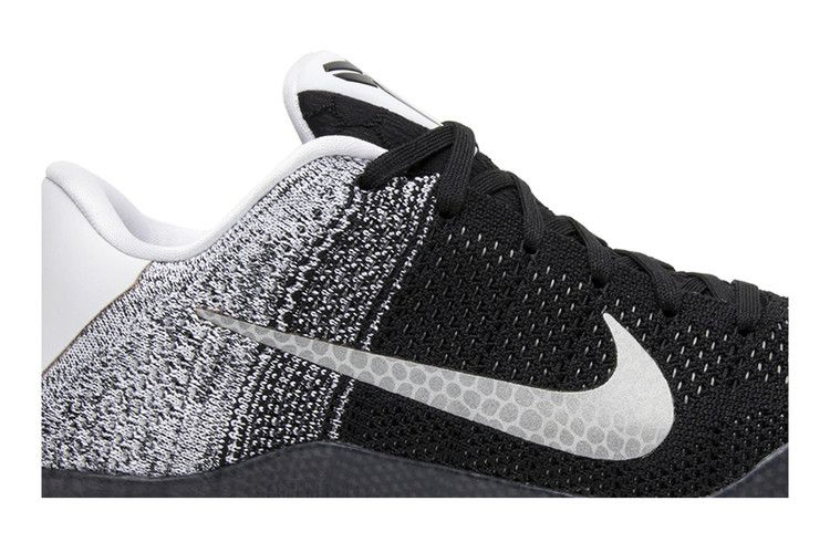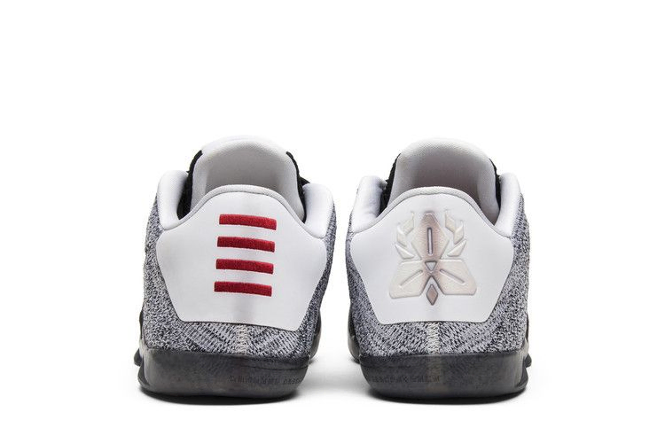 Модель Kobe 11 "Last Emperor" отдает дань уважения наследию Коби на корте, демонстрируя на пятке четкую графику, посвященную его достижениям в НБА. Верхняя часть кроссовок выполнена из градиентного материала Flyknit, переходящего от черного к белому, а тросы Flywire обеспечивают надежную фиксацию. Амортизация выполнена в виде гибрида лунарлона и Nike Zoom.
