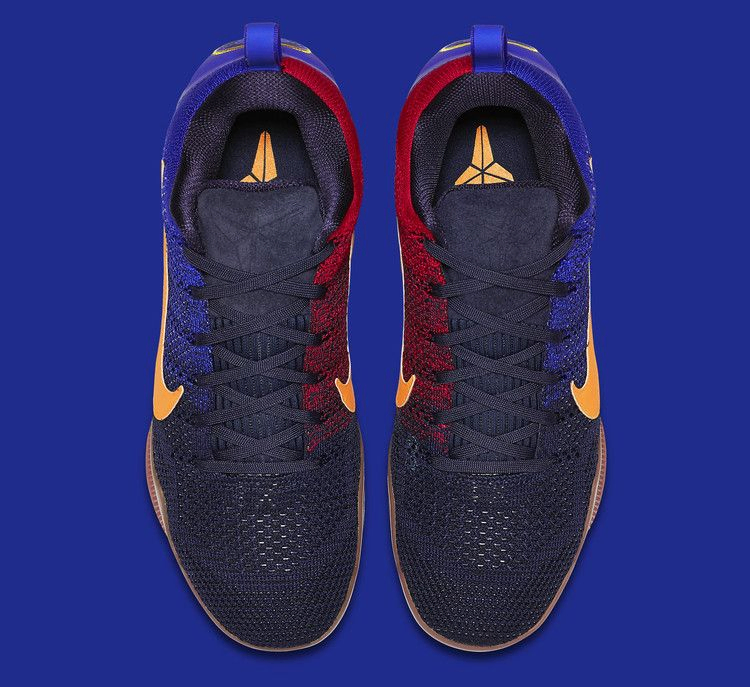 Отдавая дань любви Коби Брайанта к футболу, эти Kobe 11 Mambacurial "Barcelona" одеты в цвета его любимой команды, футбольного клуба "Барселона". Низкий верх кроссовок выполнен из премиального материала Flyknit с основой College Navy и градиентным переходом к University Red и Racer Blue на боковых и медиальных сторонах. Оранжевый логотип Swoosh на пятке, выполненный в виде футбольного значка, напоминает о выездной форме футбольного клуба, а завершает образ классическая резиновая подошва.