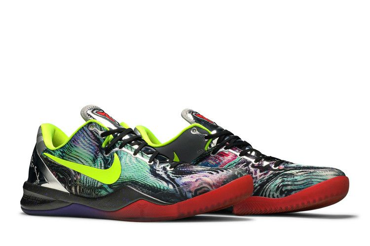 Nike Kobe 8 'Prelude' демонстрируют абстрактный вихревой дизайн, вдохновленный современным искусством, на верхней части из сетки Engineered Mesh. Зеркальная отделка на литой пятке символизирует период размышлений, который Коби пережил после травмированного сезона 2012-2013. Уникальный дизайн дополнен яркой надписью Volt на логотипе Swoosh, а также градиентными оттенками красного и фиолетового на подошве.