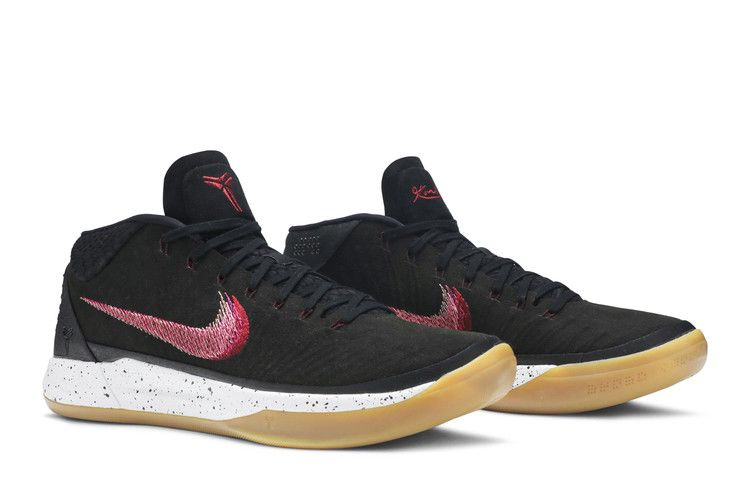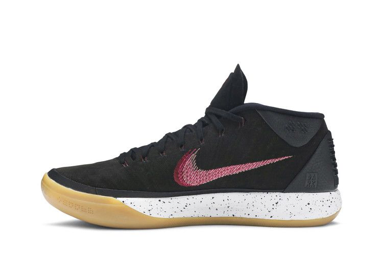 Kobe A.D. стали первыми кроссовками Коби Брайанта, выпущенными компанией Nike после его ухода из спорта. Модель Kobe A.D. Mid 'Black Gum' имеет черный замшевый верх с технологией Flywire по бокам для дополнительной поддержки. Кроссовки также имеют черные кожаные детали на пятке, белую промежуточную подошву с крапинками и голографическую розовую надпись Swoosh на боковой панели и соответствующий брендинг на язычке.- Артикул: 922482-006