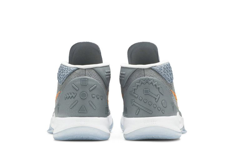 Модель Kobe A.D. 'Grey Snakeskin', посвященная прозвищу Коби Брайанта "Черная мамба", имеет верх из змеиной кожи с паутиной на лодыжке и язычке. Триптих Swoosh вышит в спектре от красного до оранжевого, такие же яркие оттенки можно найти на стельке. На пятке нанесены уникальные значки, которые, кажется, очерчивают сложную схему баскетбольной игры.