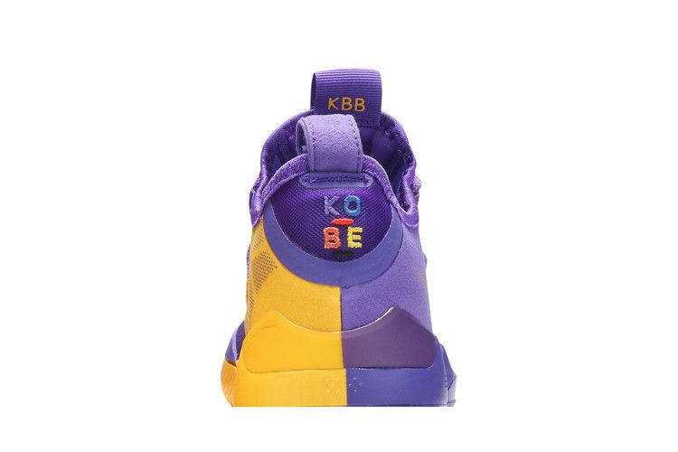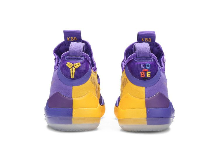 Kobe A.D. 'Lakers Pack' отдает дань уважения команде из Лос-Анджелеса двумя различными цветовыми решениями, включая эту итерацию Hyper Grape. Модель выполнена в культовом фиолетовом цвете L.A. Lakers с желтыми акцентами на медиальной части и двухцветной подошве. Другие фирменные детали включают контрастные логотипы Kobe на язычке и пятке, надпись "KBB" на внутренней стороне язычка и многоцветную вышивку "KOBE" на правой пятке. Дизайн вышел вместе с контрастной желтой версией в декабре 2018 года.