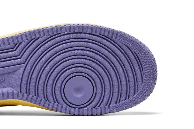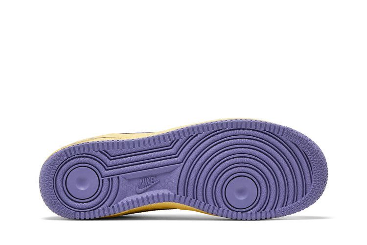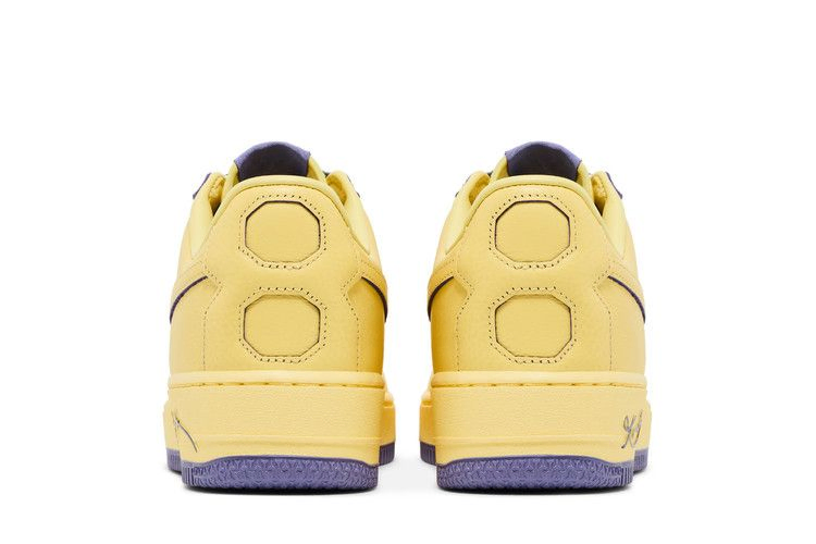 Модель Kobe Bryant x Nike Air Force 1 Low Protro "Mamba Mentality" имеет бледно-желтый кожаный верх, закрепленный широкими узорчатыми шнурками и украшенный контрастными оттенками фиолетового по краям. На задней стороне пятки наклеена большая цифра "8" - первый номер Коби Брайанта в команде LA Lakers, а на фиолетовом тканом язычке красуется логотип спортсмена. Эта модель AF1 в исполнении Protro оснащена стелькой из пеноматериала ReactX, обеспечивающей эффективную амортизацию. Кроссовки установлены на прочную подошву, подчеркнутую подписью Коби на боковой стенке.