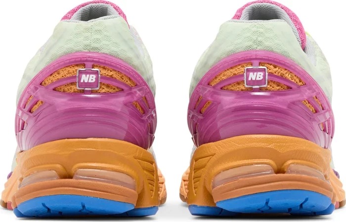 Расцветка кроссовок Action Bronson x New Balance 1906R Rosewater привносит пастельные оттенки в известную модель. Лаймово-зеленые веревочные шнурки фиксируют дышащий белый сетчатый верх, украшенный двухцветным синим логотипом "N" и тонкой розовой полоской на четверти. Яркий оттенок фуксии покрывает TPU пяточный каркас и язычок, отмеченные брендингом Baklava и New Balance 1906. Легкая амортизация обеспечивается за счет промежуточной подошвы ABZORB, окрашенной в оранжевый цвет и поддерживаемой многоцветной резиновой подметкой.- Цвета: Multi-Color