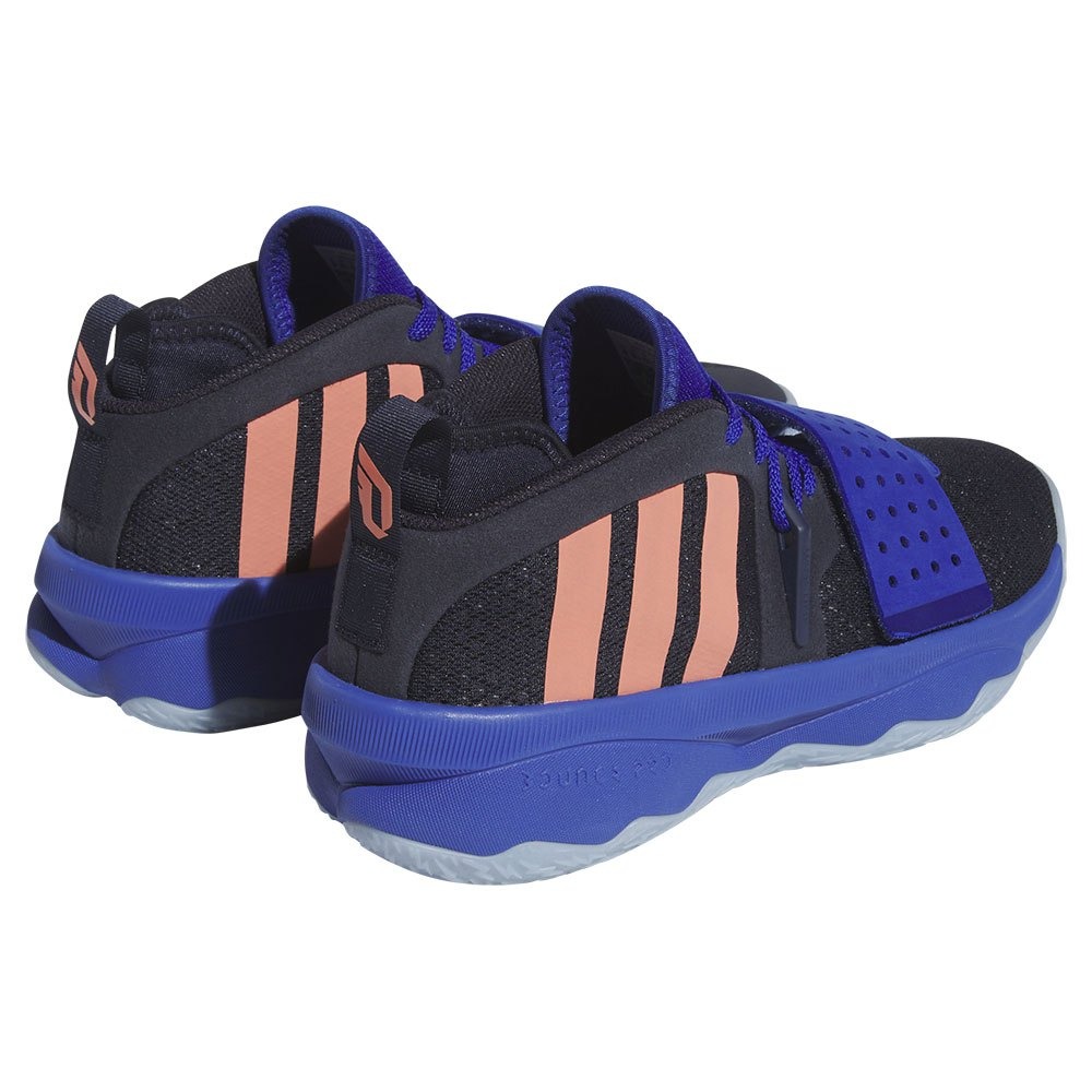 Модель adidas Dame 8 EXTPLY Out Of This World обновляет восьмую фирменную обувь Дэмиана Лилларда, добавляя яркие оранжевые акценты и экологичную конструкцию. Переработанные материалы, полученные из отходов производства, включены в дышащий сетчатый верх черного цвета. Кроссовки установлены на промежуточной подошве Bounce Pro двойной плотности, усиленной резиновой подошвой, предназначенной для сцепления с паркетом.- Цвета: Legend Ink, Семена Coral Fusion, Черный