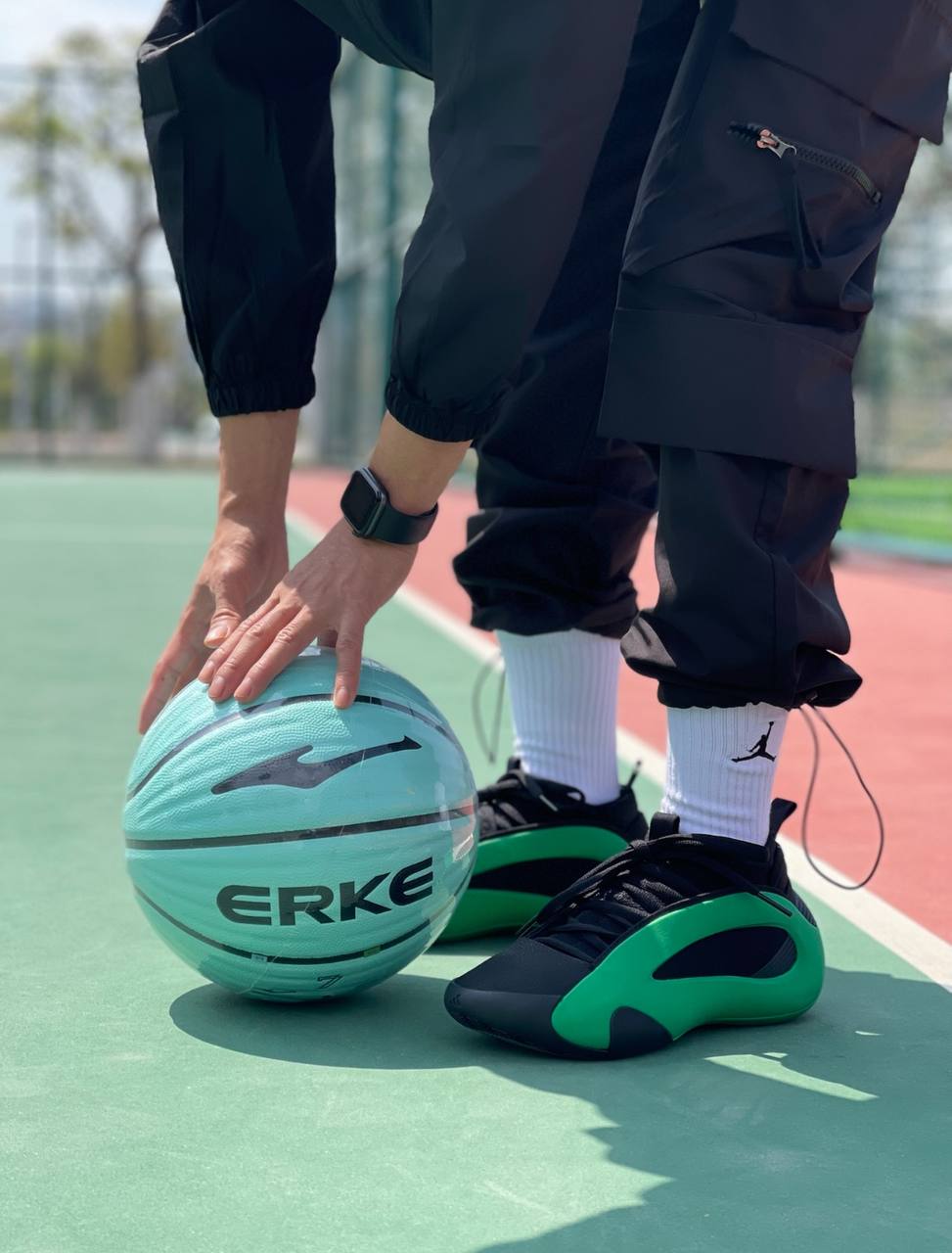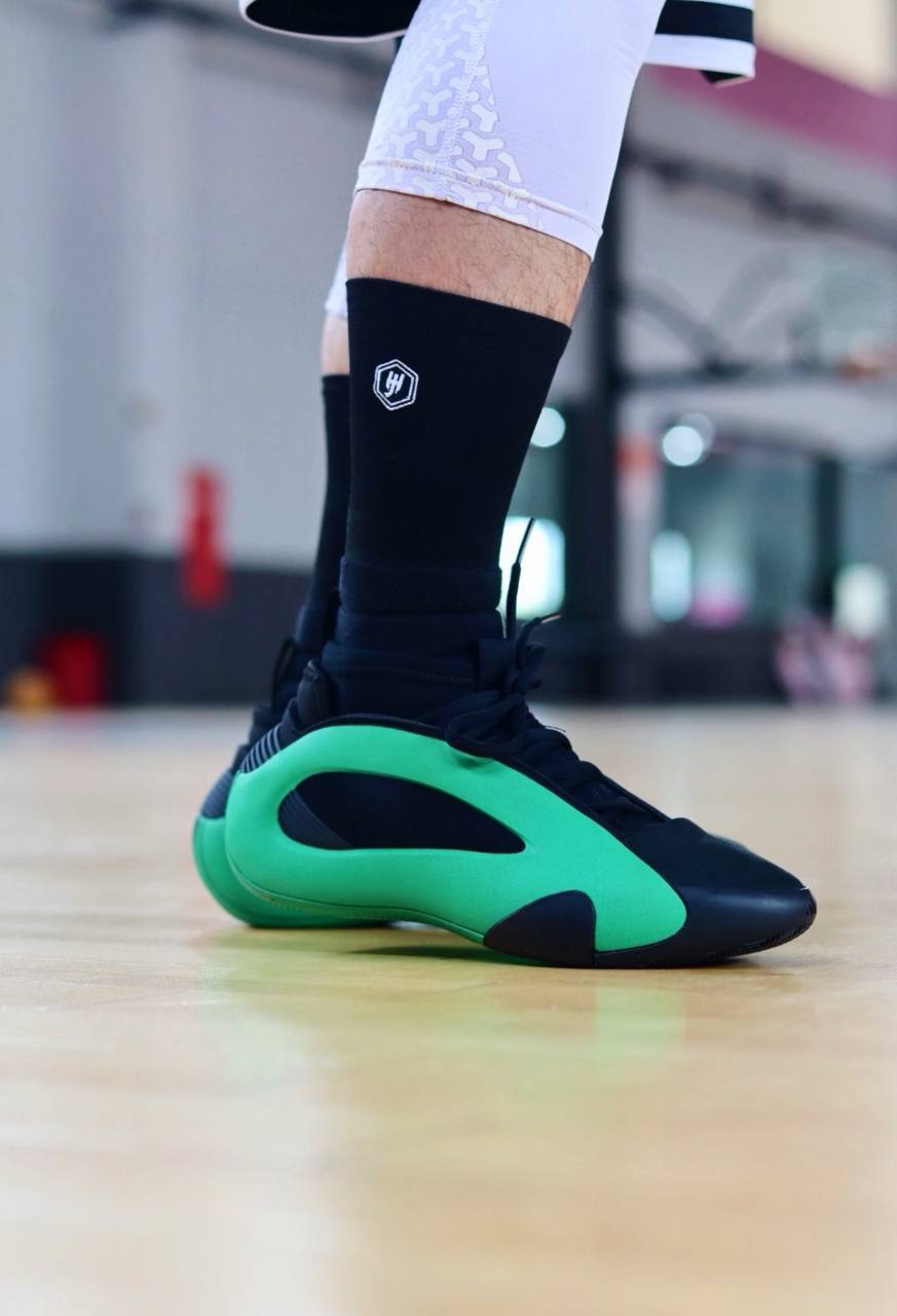 Модель adidas Harden Vol. 8 Luxury Green имеет ярко выраженную клетку из EVA, выполненную в смелом зеленом оттенке. Верх из воздухопроницаемого черного текстиля украшен эластичным манжетом, напоминающим носок, и прочным мыском из искусственной кожи. Каркас в форме капли переходит в полноразмерную промежуточную подошву Jet Boost. Подошва из резины с рисунком 'JH' и традиционным протектором в виде елочки по всему периметру завершают образ.- Цвета: Core Black/Green/Core Black