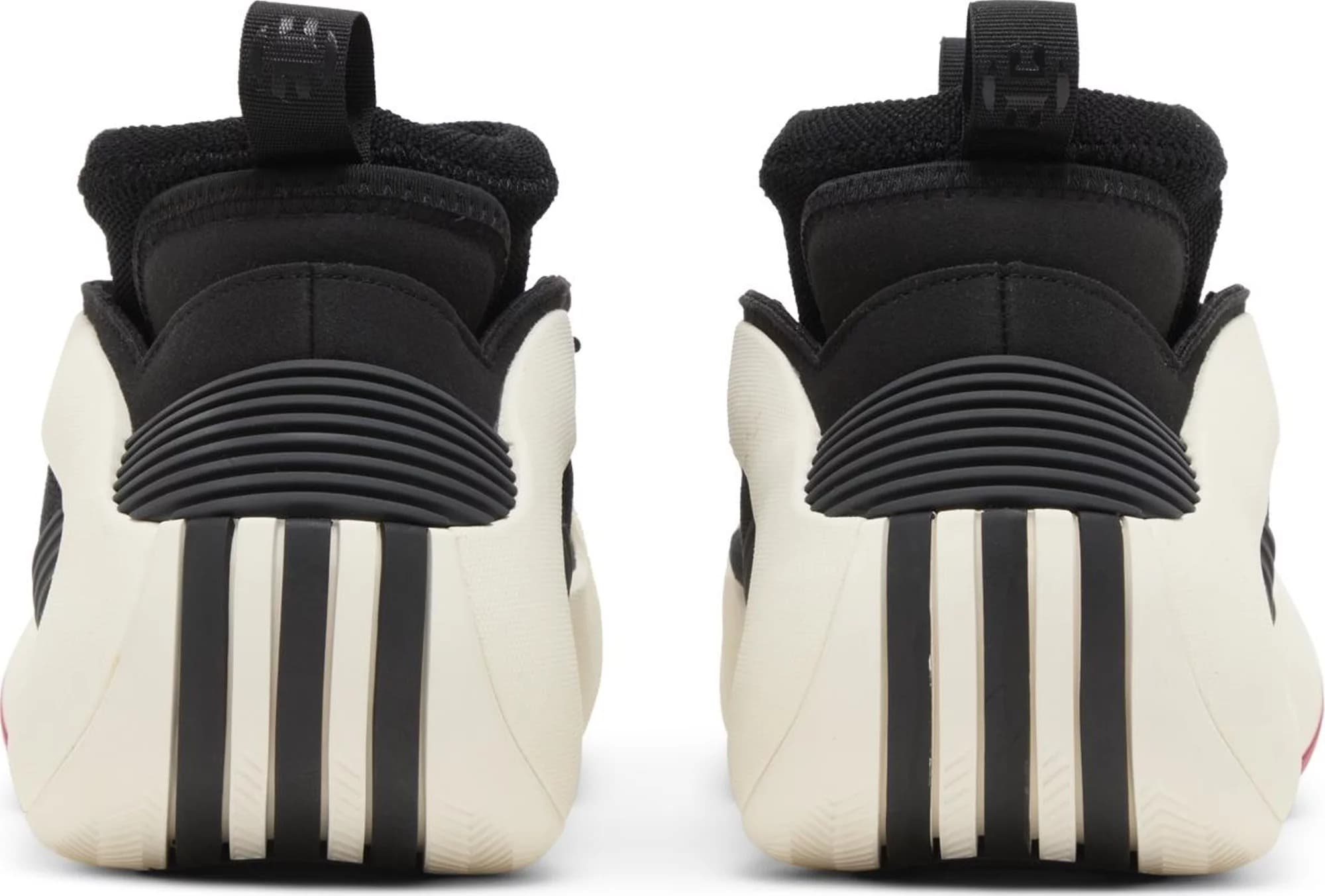 Верхняя часть кроссовок adidas Harden Vol. 8 Pioneer выполнена из черного текстиля и поддерживается крупной клеткой EVA в форме капли, контрастирующей с белой отделкой. Манжета, напоминающая носок, обеспечивает плотную посадку, а формованная стойка пятки обеспечивает устойчивость задней части стопы. Помимо личного логотипа Джеймса Хардена на задней петле, элементы брендинга включают черные полосы на пятке и мидсоли Jet Boost. Резиновая подошва с рисунком 'JH' обеспечивает оптимальное сцепление с поверхностью.- Цвета: Cloud White/Core Black/Better Scarlet