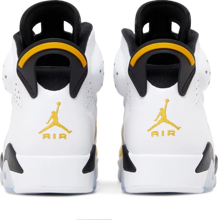 Модель кроссовок Air Jordan 6 Retro Yellow Ochre обновляет чемпионский силуэт с помощью цветовых блоков, напоминающих о выпуске OG "Carmine". Верхняя часть из желтого нубука и белой кожи украшена брендингом Jumpman на неопреновой шнуровке и задней части пятки. Контрастные черные акценты расположены на формованном заднике, внутренней подкладке и язычке, оснащенном двойными отверстиями для захвата, что облегчает надевание и снятие. Легкая амортизация обеспечивается за счет полиуретановой промежуточной подошвы со встроенной амортизацией Air-sole в носочной части и видимым блоком Air в пятке. Полупрозрачная резиновая подошва обеспечивает надежное сцепление с поверхностью.