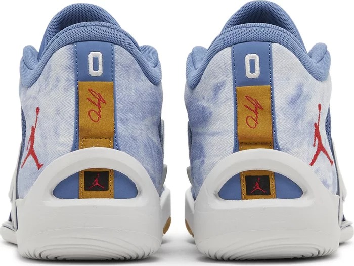 Модель Jordan Tatum 1 Denim выполнена из сетки цвета индиго с бесшовными накладками, имитирующими постиранный джинсовый материал. Личный логотип Тэйтума украшает язычок с малиновой вышивкой, а также логотип Jumpman на боковой пятке. Заметный опорный каркас из TPU поддерживает мидсоль из пеноматериала, а в передней части стопы установлен объемный блок Zoom Air. Для снижения веса в подошве использовано меньше резины, а сам материал расположен там, где он больше всего нужен: в передней части стопы и под носком.- Цвета: Stone Blue/University Red/Mystic Navy