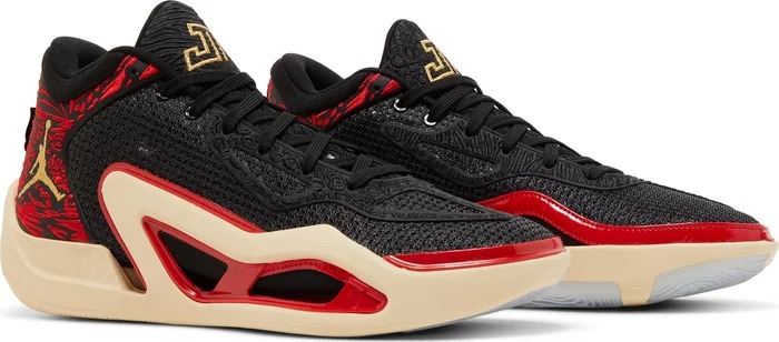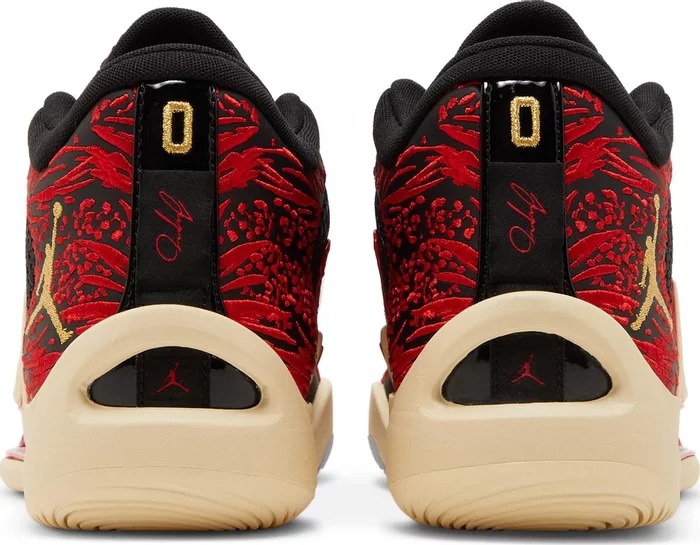 Jordan Tatum 1 'Zoo' - дебютная фирменная модель Джейсона Тэйтума, выполненная в цветах, которые символизируют любимое место звезды НБА, куда он водит своего сына Дьюса. Легкий силуэт имеет вентилируемый верх из черной сетки, укрепленный каркасом из TPU и украшенный малиновым принтом вдоль пятки. В носочной части расположены большие подушечки Zoom Air, а также подошва из вспененного материала с минимальным резиновым усилением под носком и сводом стопы.- Цвета: Black/Metallic Gold/University Red/Beach